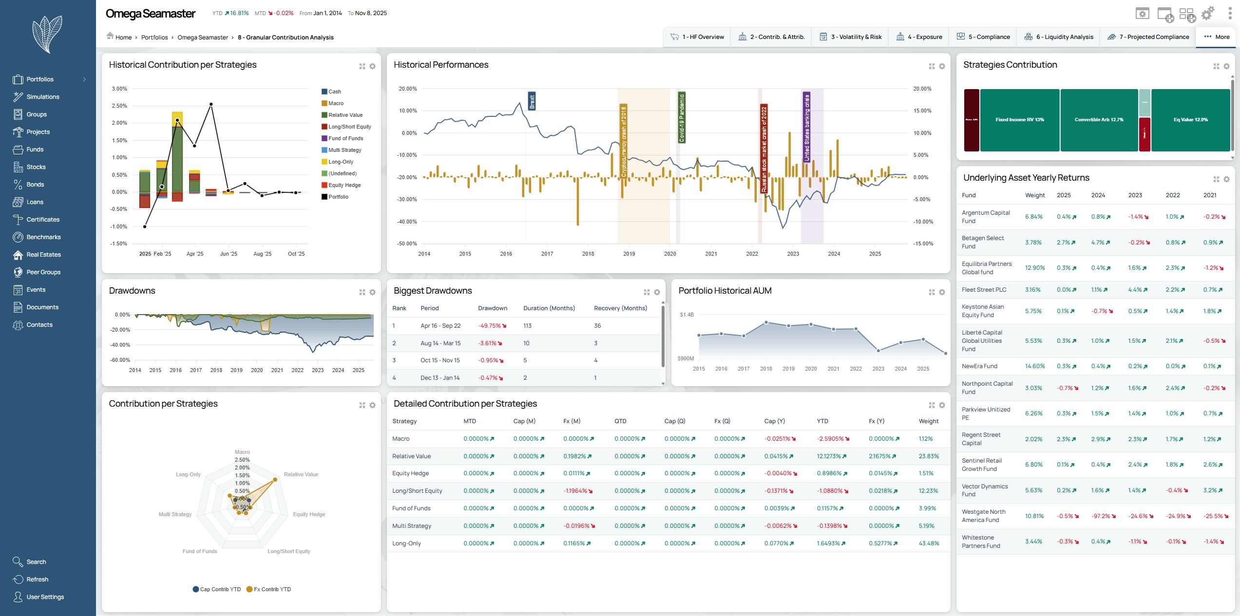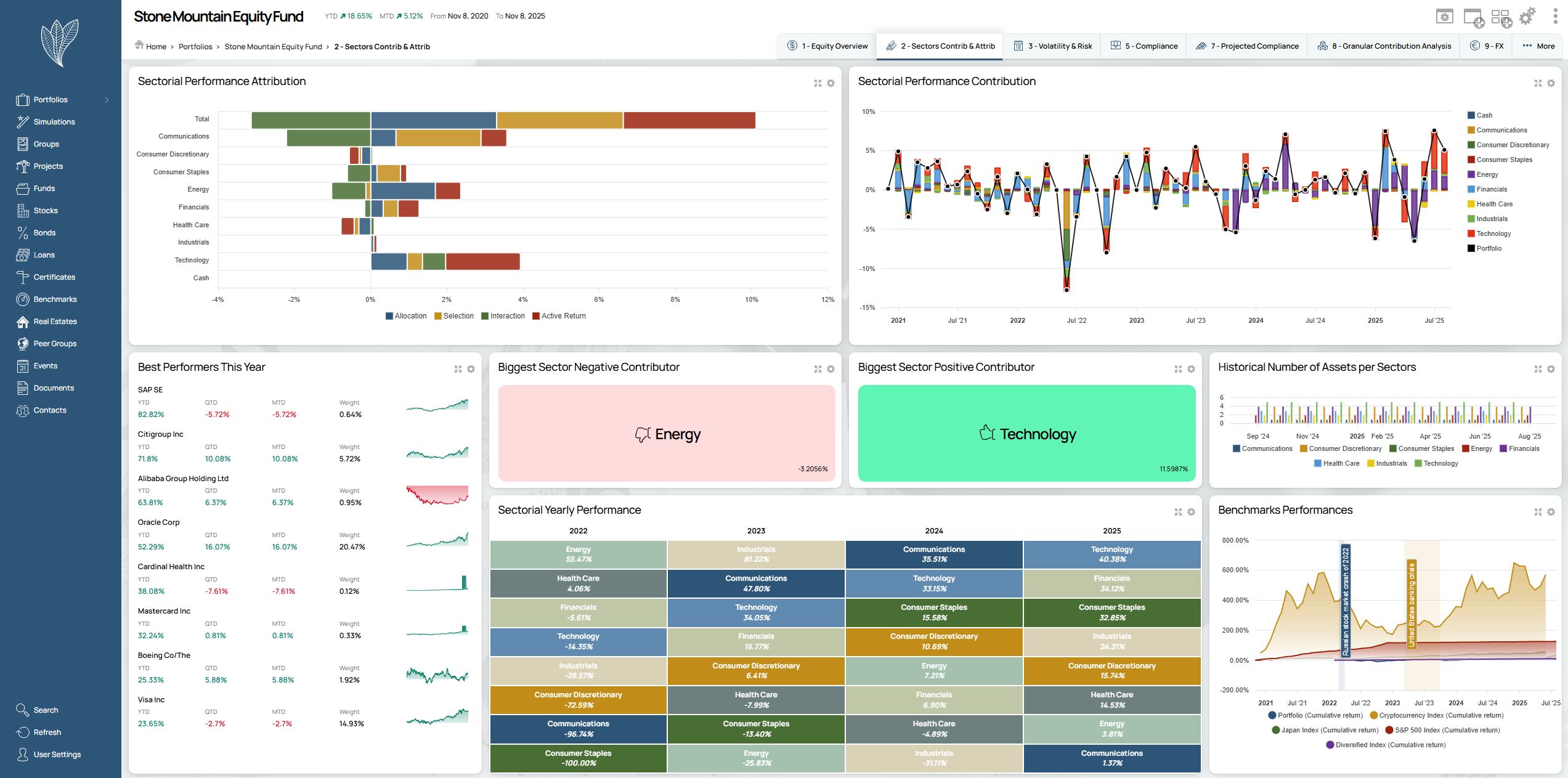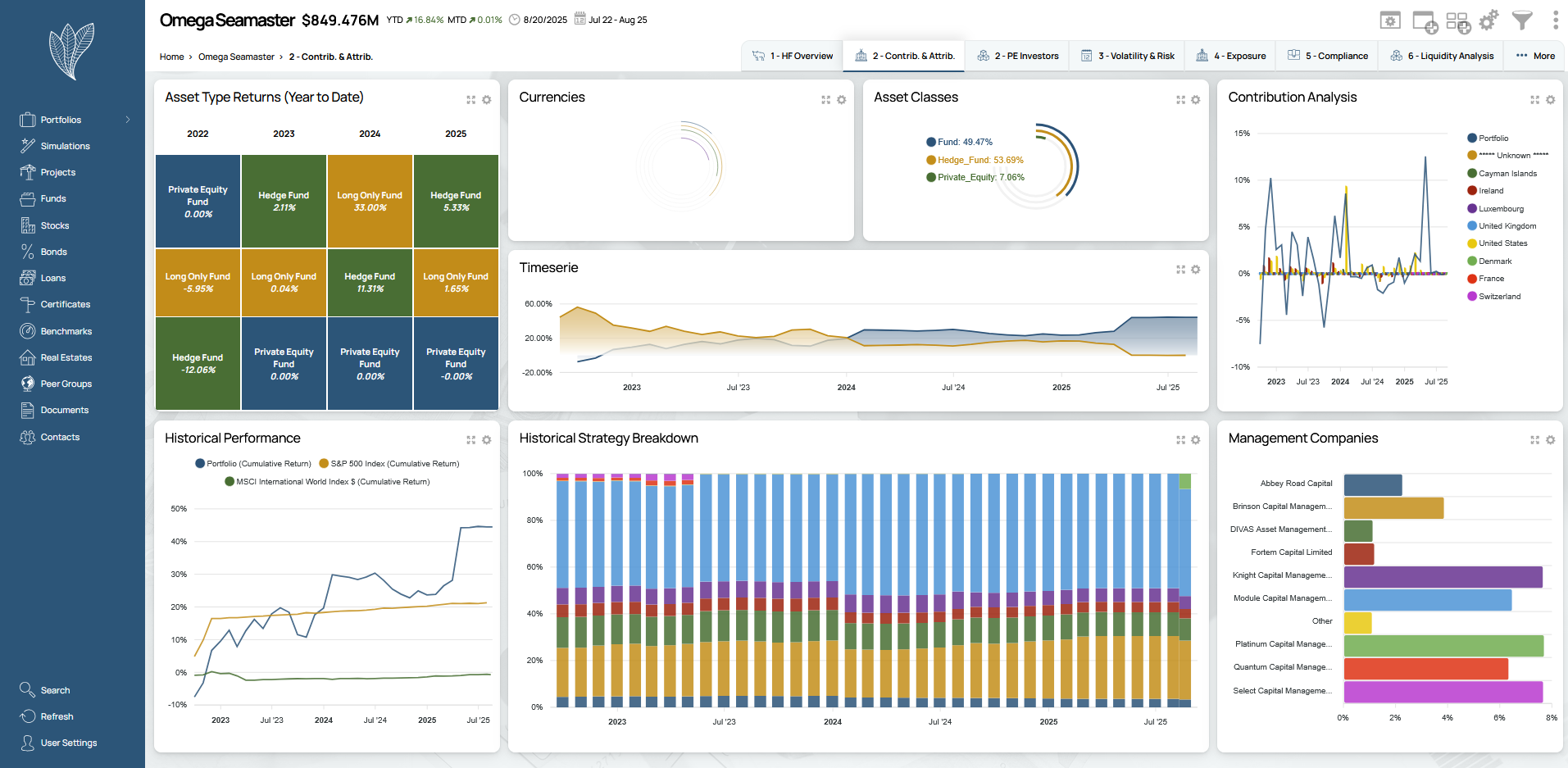 Obtenez une clarté totale sur ce qui motive vos rendements. Analysez la performance du portefeuille avec précision, du niveau supérieur jusqu'aux actifs ou stratégies individuels.