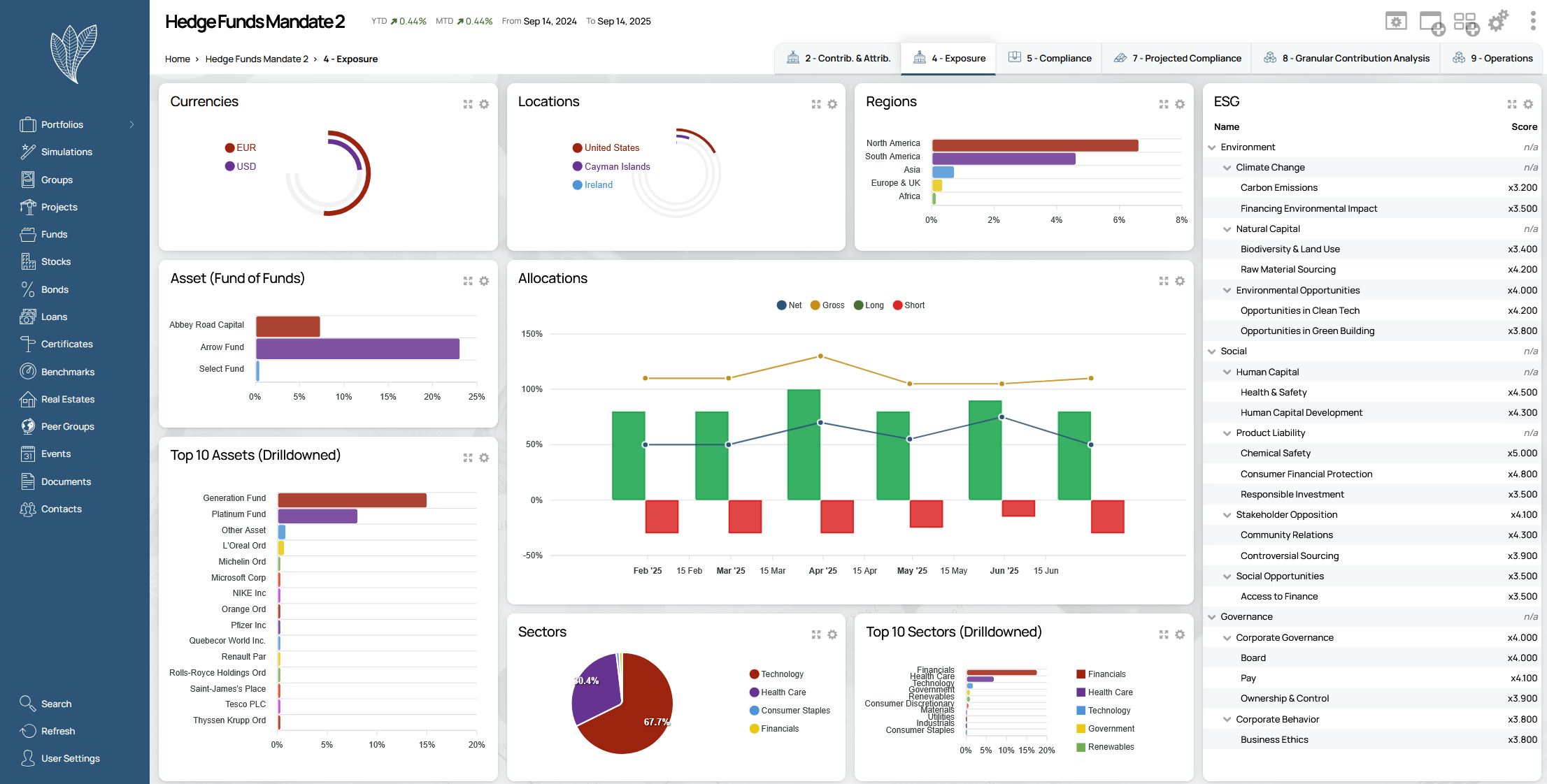 - Contribution et attribution multi-niveaux par actif, stratégie ou toute autre classification disponible