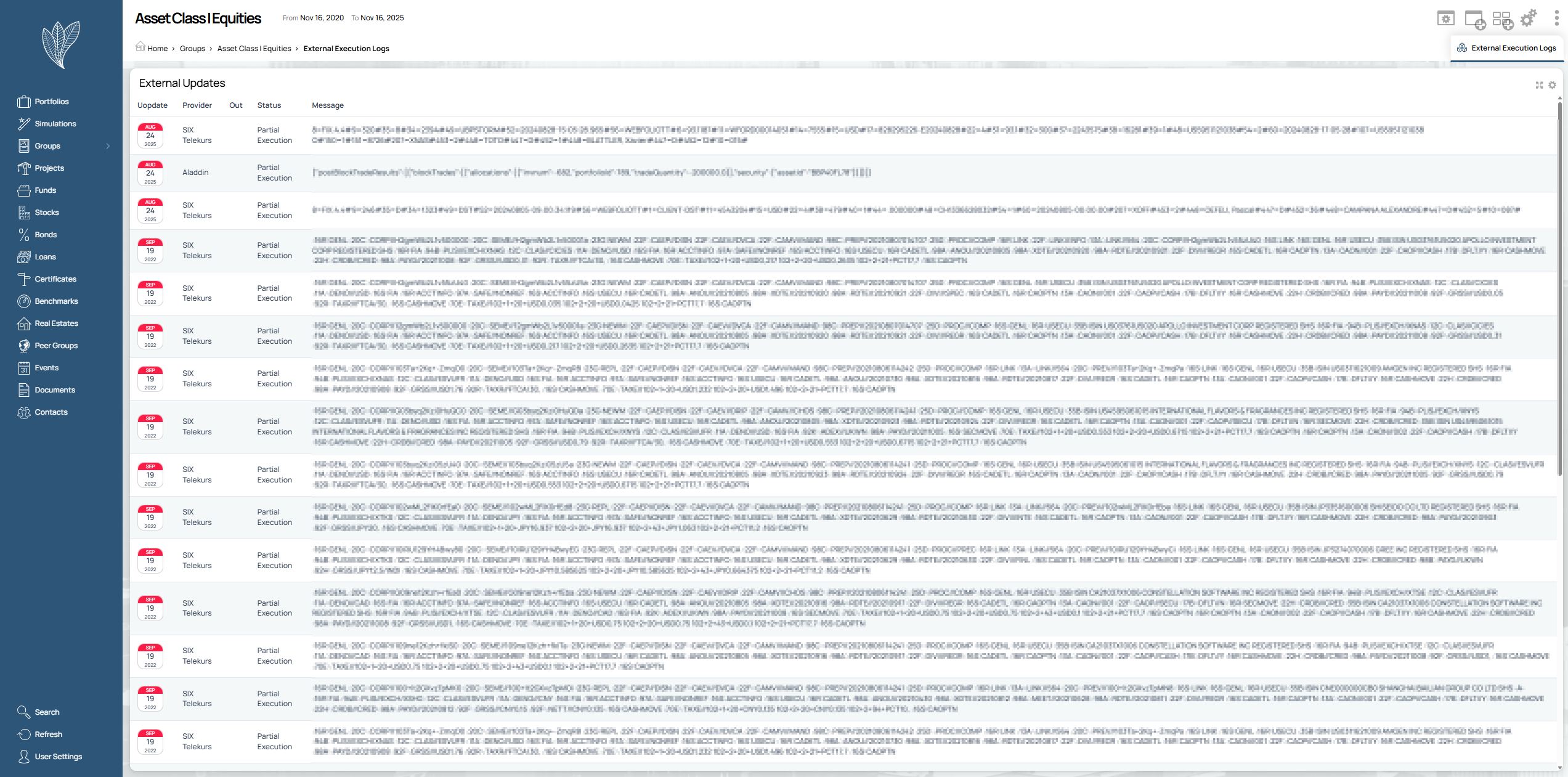 De la création d'ordre au règlement, suivez et contrôlez chaque étape de vos transactions. Gérez des flux de travail complexes sur toutes les classes d'actifs — publiques et privées — avec des contrôles automatisés et une visibilité en temps réel à chaque étape du cycle de vie des transactions.
