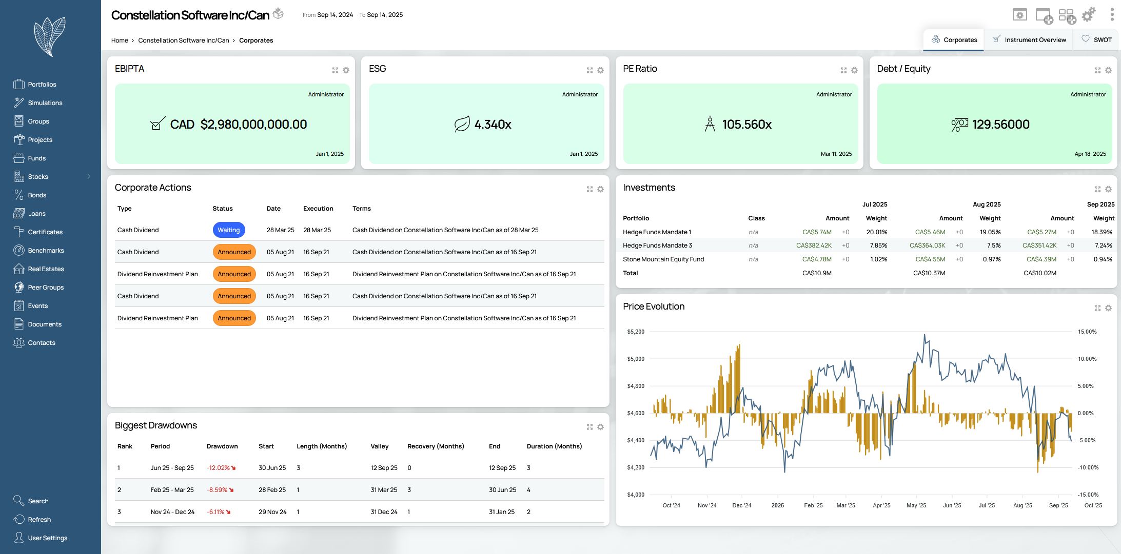 Les équipes opérationnelles bénéficient d’une exécution de transactions transparente utilisant les protocoles SWIFT et FIX. Le système gère les actions corporatives, soutient les stratégies de couverture FX et permet la gestion de registres unitarisés et capitalisés. La comptabilité parallèle et la validation post-négociation sont intégrées pour assurer l’intégrité transactionnelle complète et la précision opérationnelle.